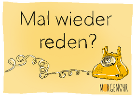 Im Oktober wurden zwei verschiedene Flyer neu gestaltet und in den Druck gegeben. Auf der Vorderseite unterscheiden sich diese nur in einem kleinen Teil: „Mal wieder reden“ mit Punkt richtet sich an Menschen, die Telefonpaten sein möchten, und der gleiche Satz mit Fragezeichen an Menschen, die sich einsam fühlen und gerne angerufen werden würden. Auf den Rückseiten wird das Angebot den jeweils angesprochenen Interessenten kurz erklärt. „Besonders zur Weihnachtszeit möchten wir die Karten mit dem Fragezeichen in den Umlauf bringen“, sagt Andreas Wolf-Kather. „Sicherlich gibt es Menschen, die sich gerade jetzt mehr Kontakt zu Mitmenschen wünschen und die sich freuen würden, regelmäßig einen Besuch per Telefon zu erhalten. Wer jemanden kennt, für den unser Angebot gerade richtig ist, kann ihm gerne unseren Flyer mitgeben.“